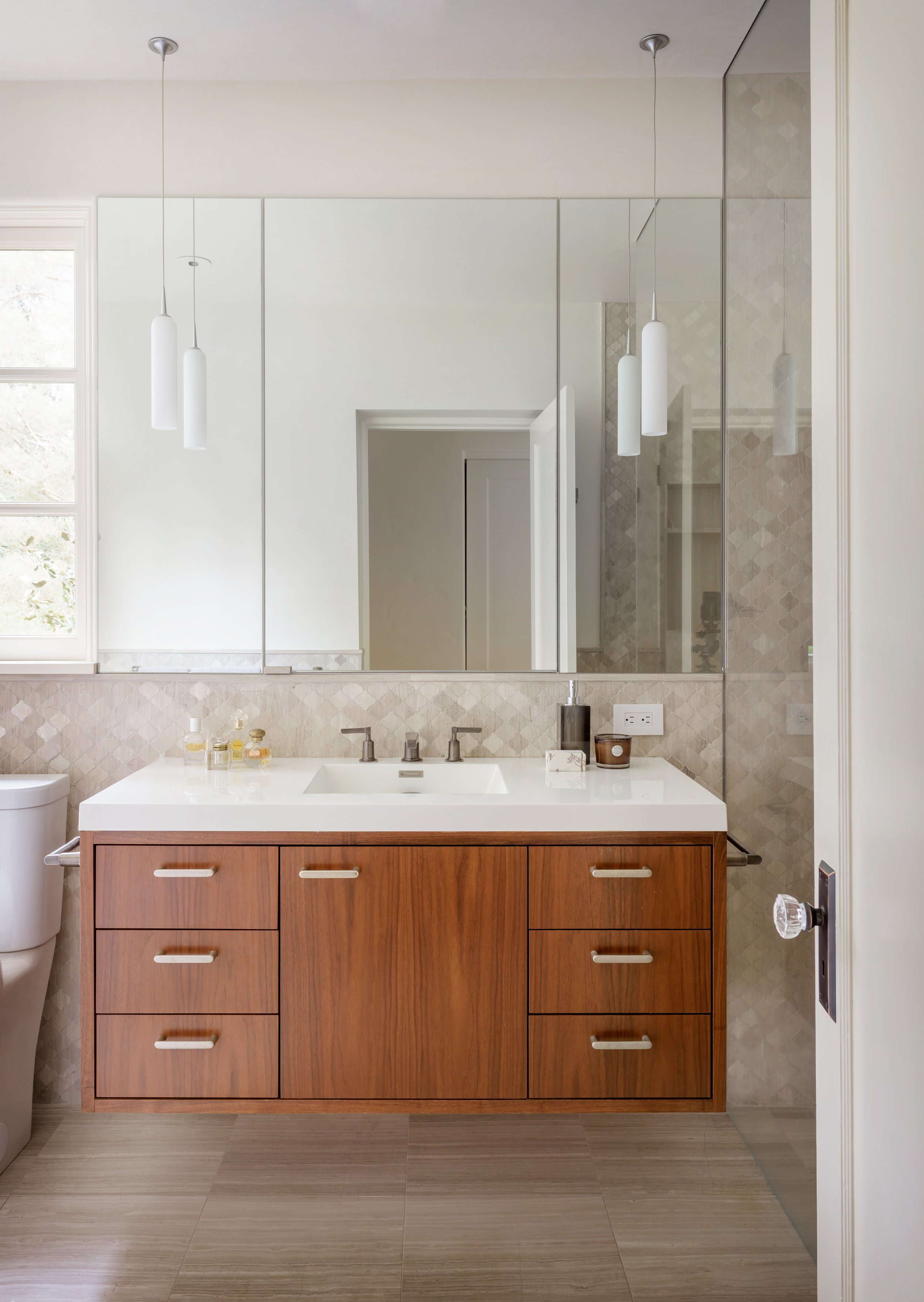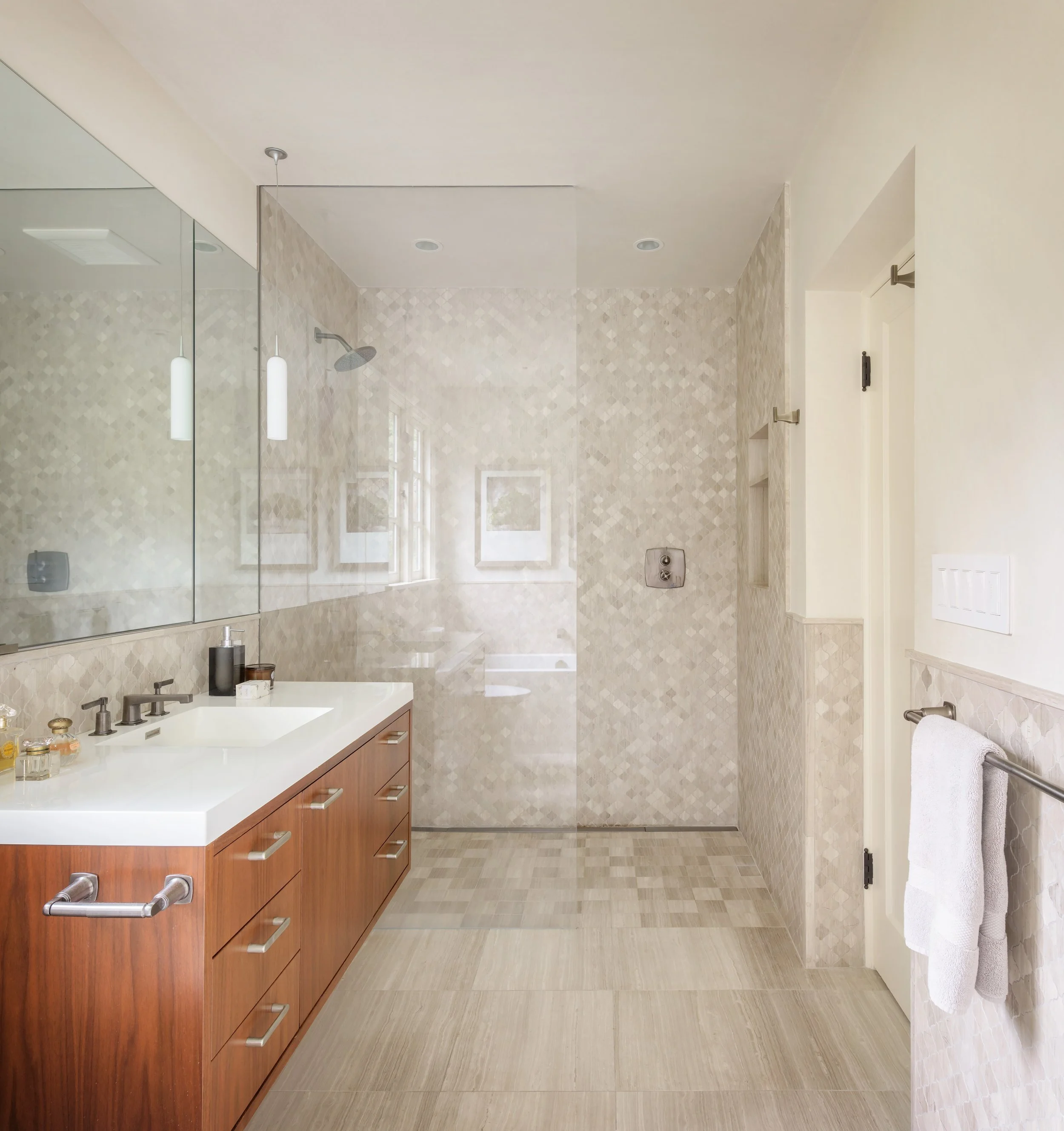 On the main floor, quality existing furniture was preserved and reupholstered, while new fabrics, furnishings, and area rugs offered a fresh, modern update. Custom furniture pieces were crafted for the renovated Master Suite with the help of local trade workrooms. In the Master Bathroom, we optimized a small floor plan, enhancing its functionality and selected materials that were in harmony with the main floor. The result is a quiet sophistication that unifies the entire home, paying homage to its rich history while embracing a modern, timeless aesthetic.